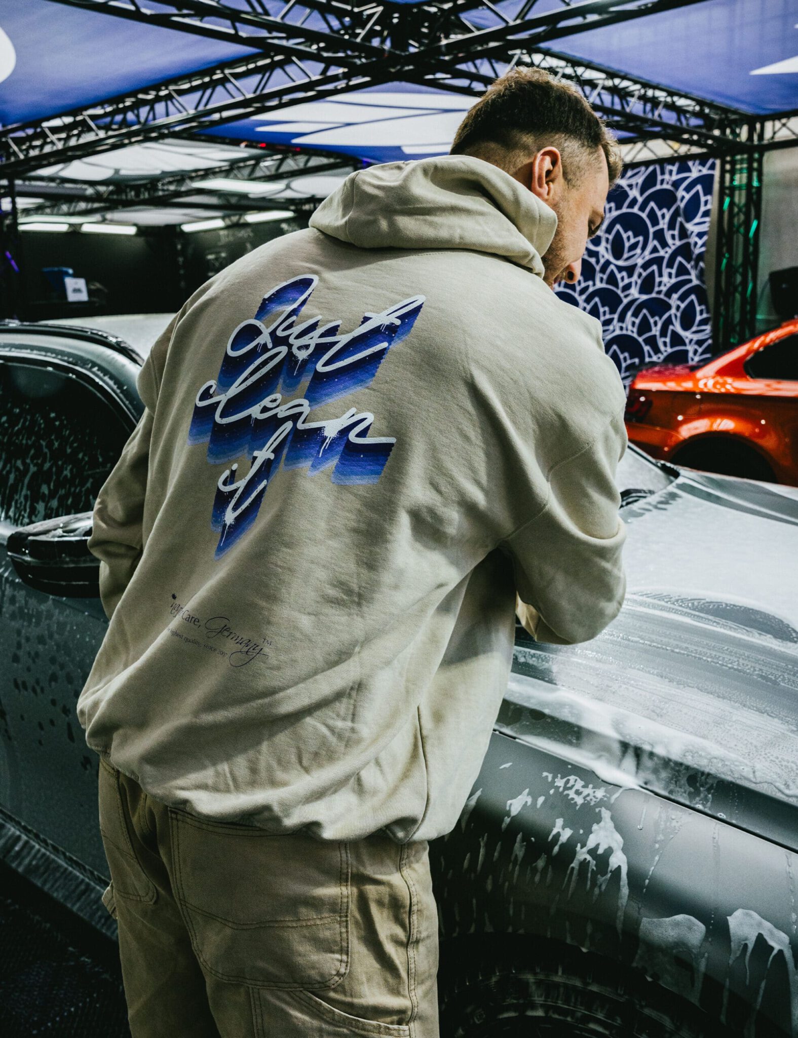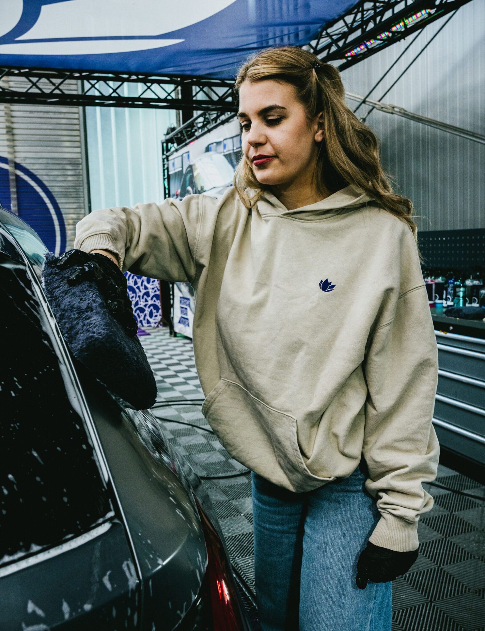 Der Nanolex Hoodie Beige "Just clean it" ist aus 100 % Bio-Baumwolle gefertigt