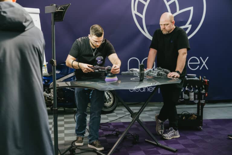Hier ein paar weitere Informationen zu den Kursen: Beide dauern einen Tag, verfolgen jedoch einen leicht unterschiedlichen Ansatz. Für Enthusiasten möchten wir Informationen darüber bereitstellen, wie sie ihr Fahrzeug optimal reinigen und schützen können, wobei ein kleiner Teil dem Polieren und Beschichten gewidmet ist. Den Fachleuten hingegen möchten wir zeigen, wie sie für sich selbst und ihre Kunden das bestmögliche Ergebniss erzielen können. Die Fachleute lernen zwar auch etwas über die Reinigungsprodukte, aber die meisten interessieren sich mehr für das Polieren und die Beschichtungen. Einer der wichtigsten Punkte beider Schulungen ist, dass unsere Kunden wissen, wie unsere Produkte funktionieren. Dies verbessert das Kundenerlebnis, da sie die bestmögliche Leistung aus unseren Produkten herausholen können.